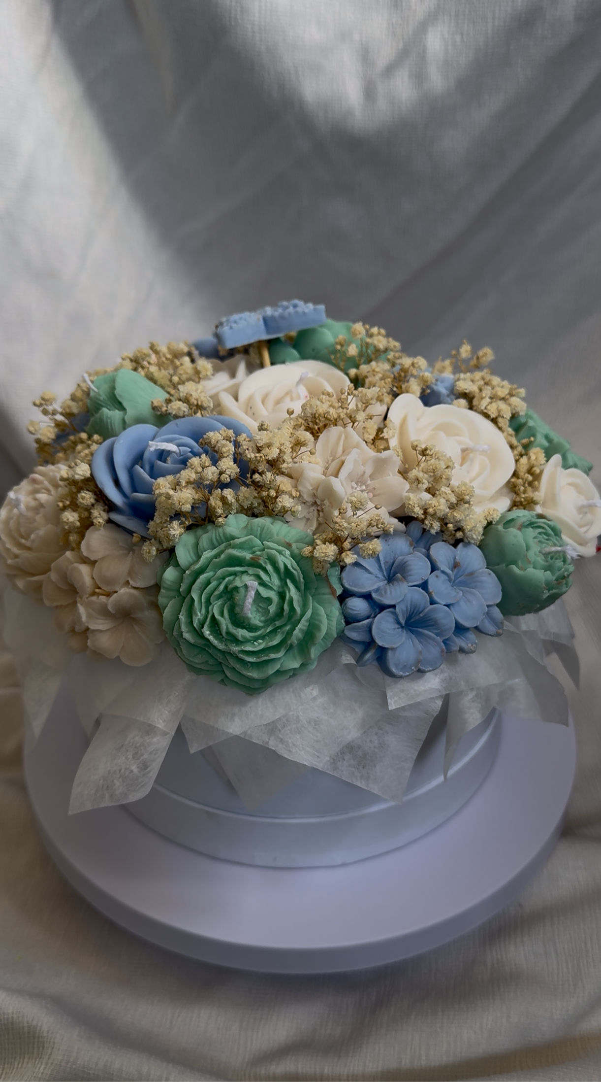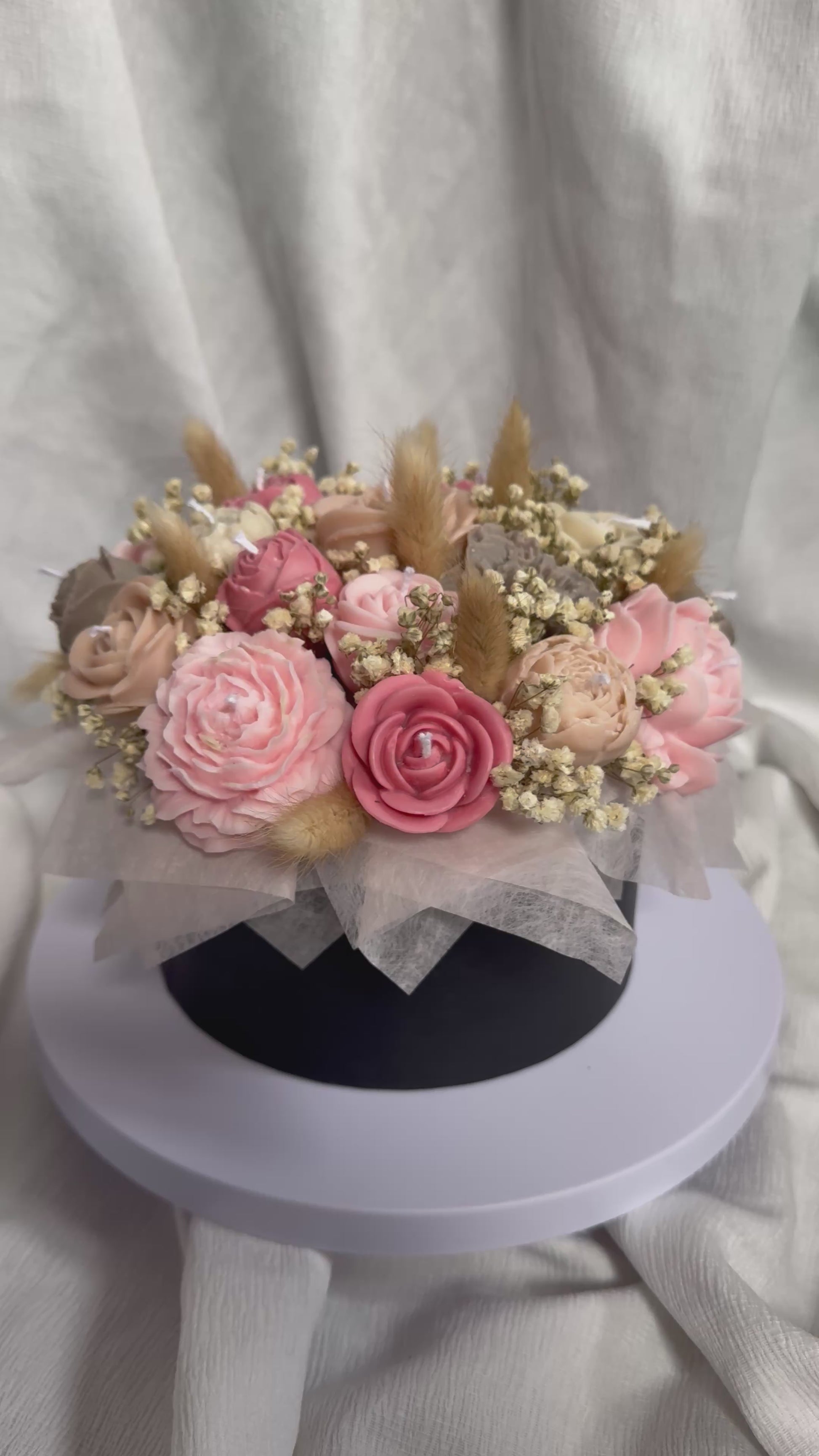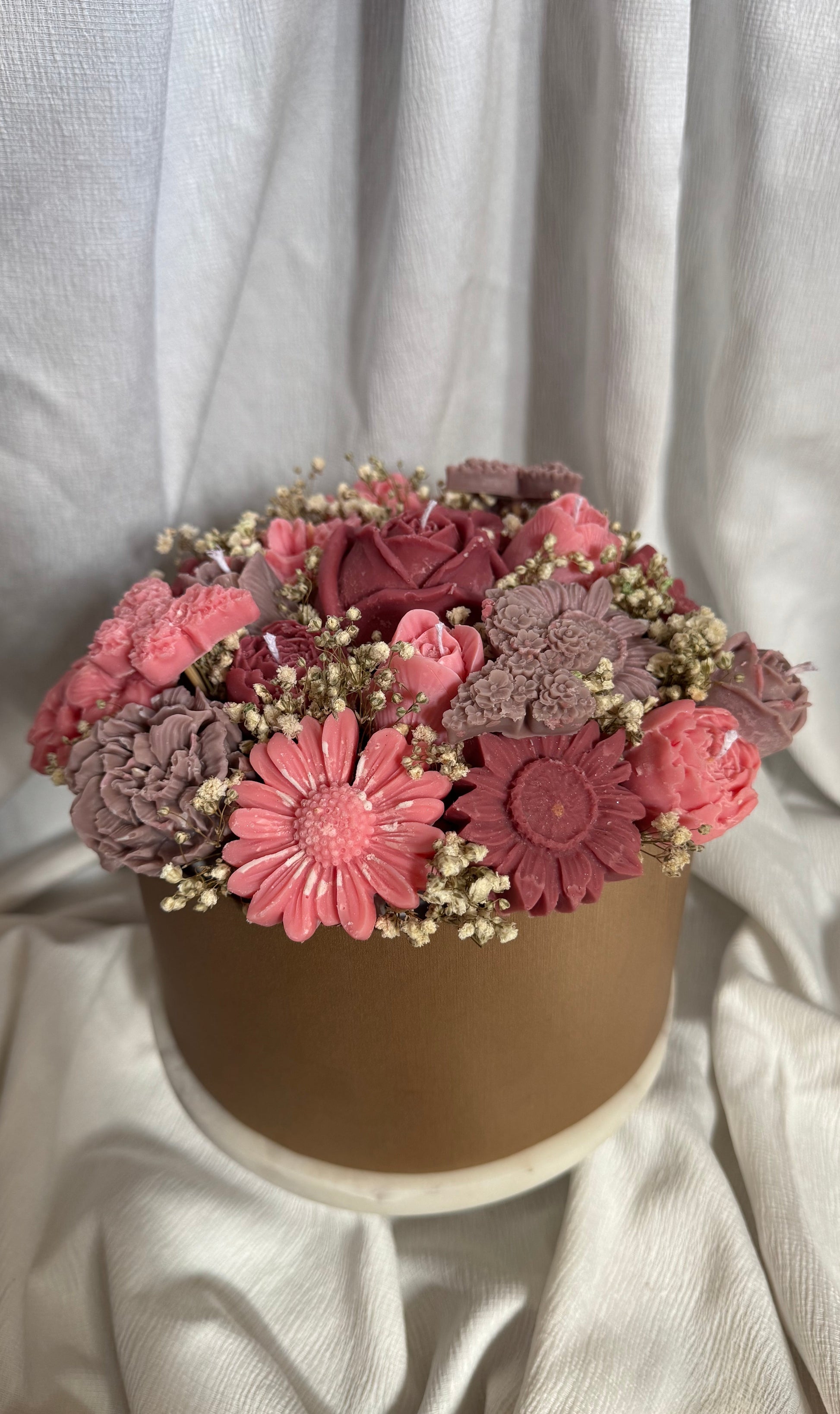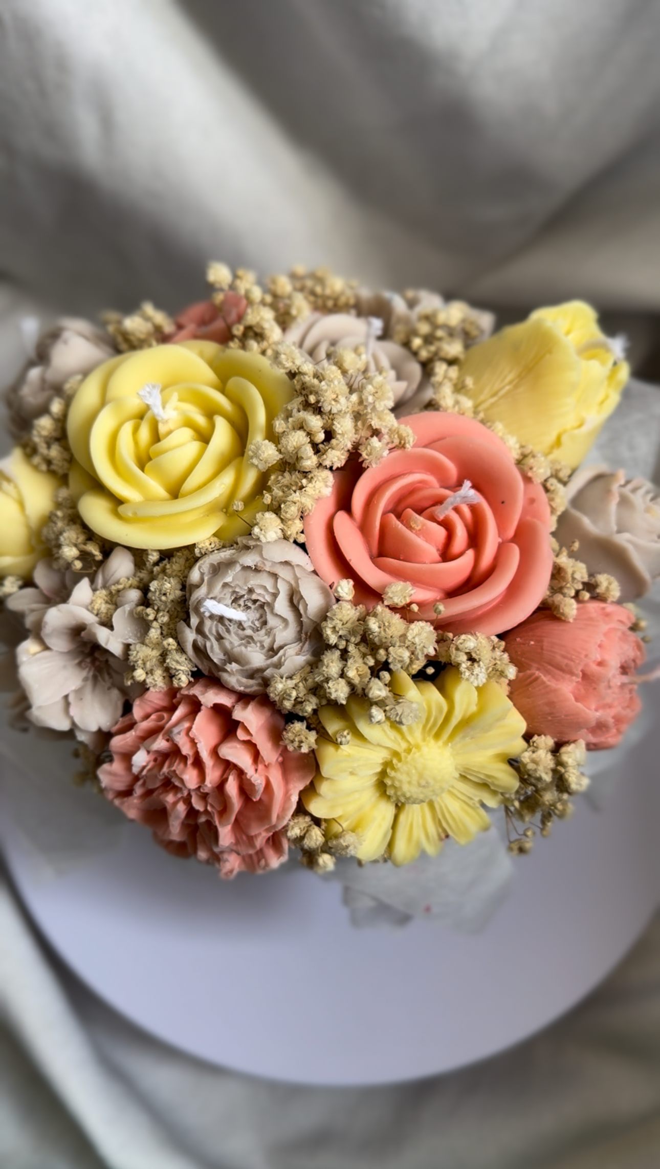 Luxe gepersonaliseerde bloemenboeket van 100% natuurlijke sojawas. Een boeket vol rust en elegantie. De kleuren gekozen door JOU!. Perfect om iemand te verrassen, als bedankje of gewoon om een vleugje natuurlijke schoonheid in huis te halen. Let op, de boeketten hebben een langere levertijd! Stuur een berichtje via instagram om jou kleuren door te geven.
